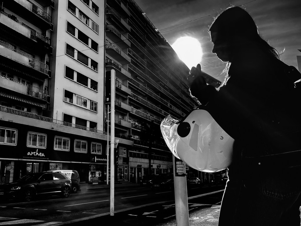 3/ elle observe un passant qui en a plein le dos ?